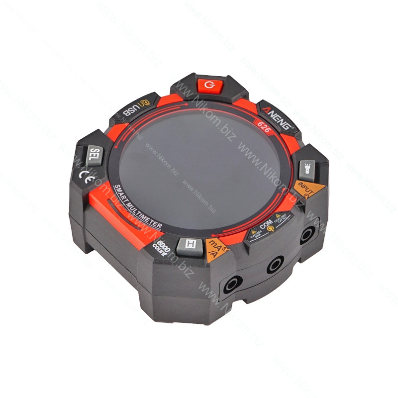 Цифровий мультиметр ANENG 626 призначений для вимірювання напруги, струму, опору, ємності, частоти, температури та інших параметрів. Оснащений великим круглим кольоровим дисплеєм, вбудованим акумулятором і потужним світлодіодним ліхтариком. Підтримує автоматичний і ручний режими вимірювання, а також безконтактне виявлення напруги та провідників.