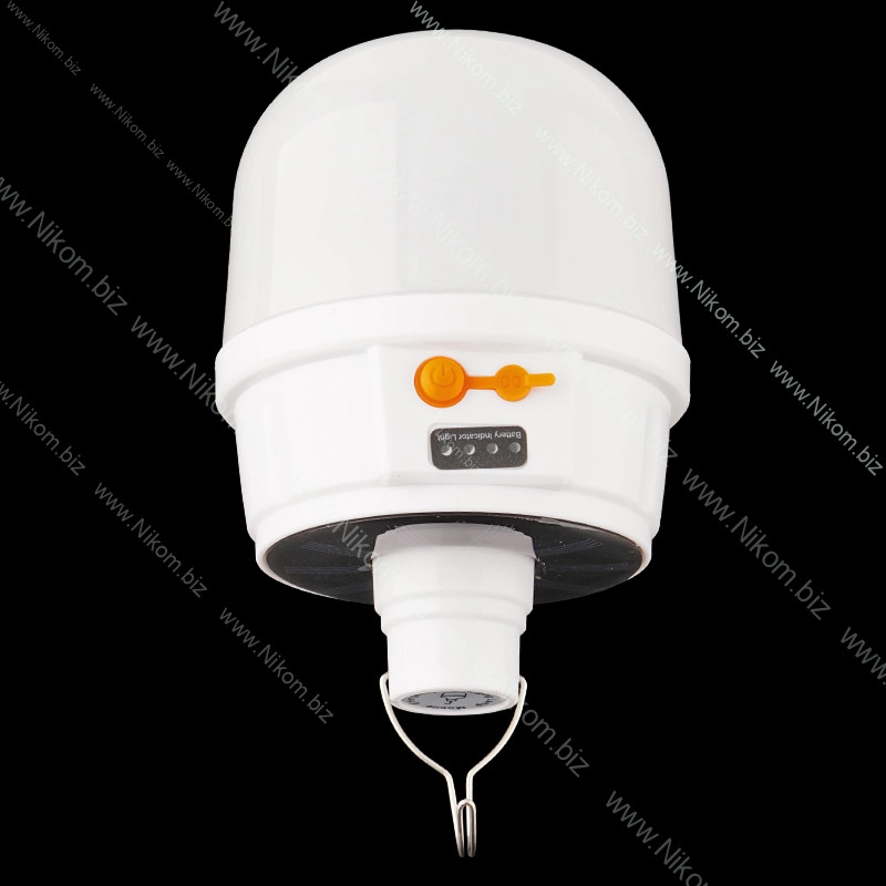 Кемпінговa лампа JD-2022 призначена для автономного освітлення в туристичних умовах, на дачі або в побуті. Оснащена 24 світлодіодами, вбудованим акумулятором ємністю 2400 мА·год, сонячною панеллю та гачком для підвішування.