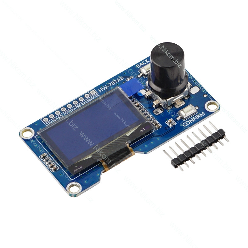 Модуль являє собою комбінацію дисплея OLED з інтерфейсом IIC та енкодера EC11. Компоненти працюють незалежно та просто розміщені на одній платі для зручності. У комплекті передбачені кнопки «Назад» та «Підтвердити», які також функціонують окремо і можуть використовуватись за потреби. Цілісна компоновка робить конструкцію компактною, спрощує зовнішній вигляд і підвищує зручність при створенні DIY-проєктів.