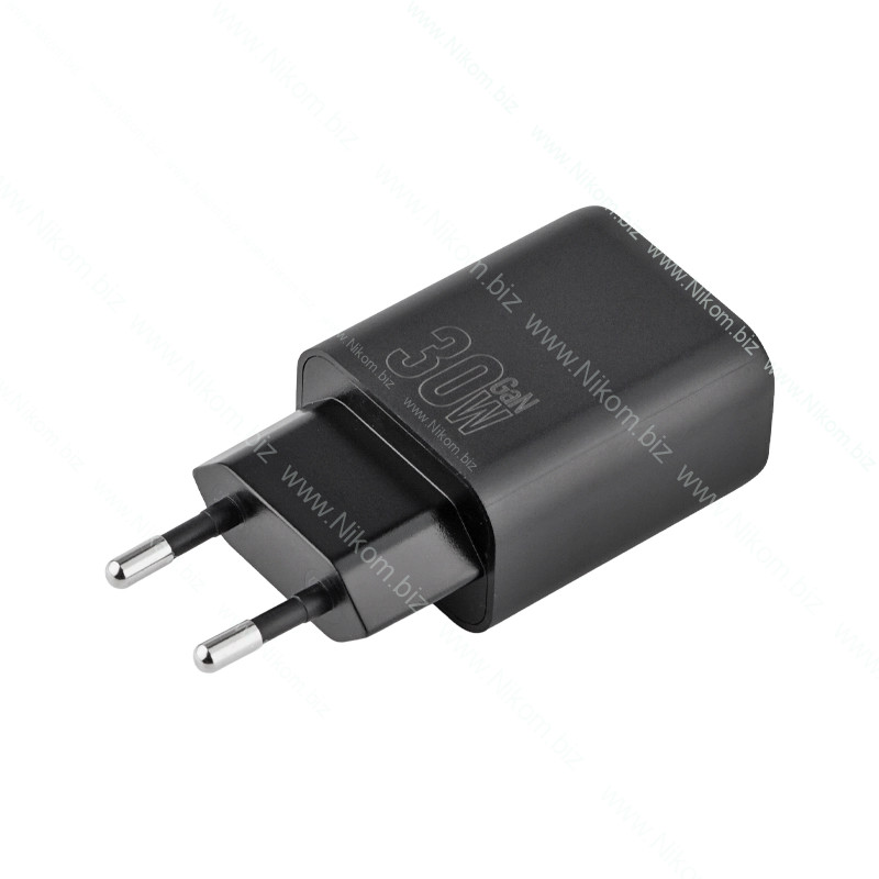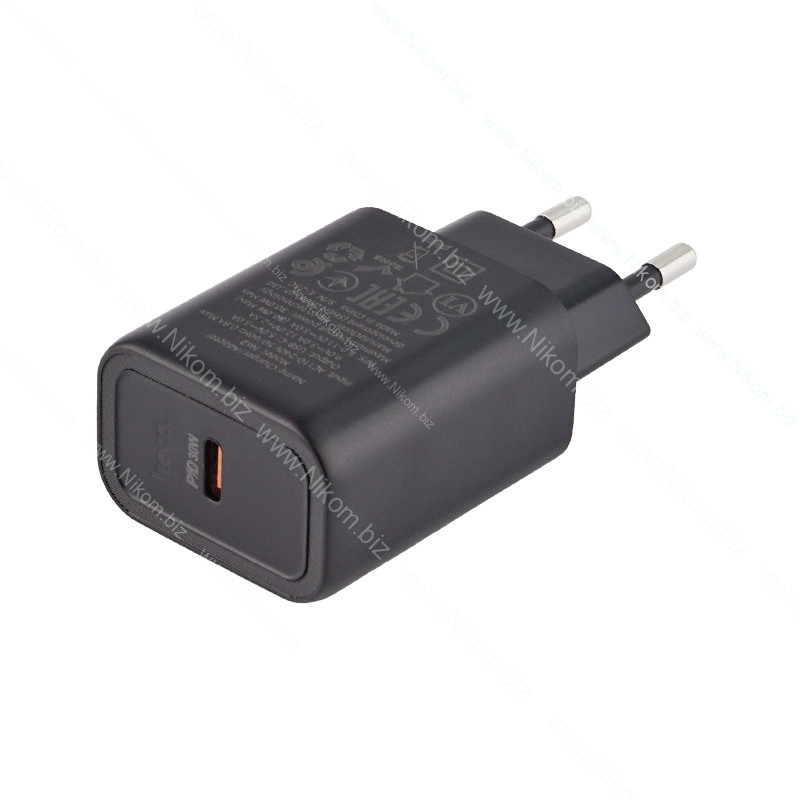 Мережевий зарядний пристрій призначений для швидкої зарядки пристроїв через порт USB-C. Забезпечує потужність до 30 Вт і підтримує технології PD, QC, FCP та AFC. Компактний корпус виготовлений з вогнестійкого пластику PC з євровилкою.