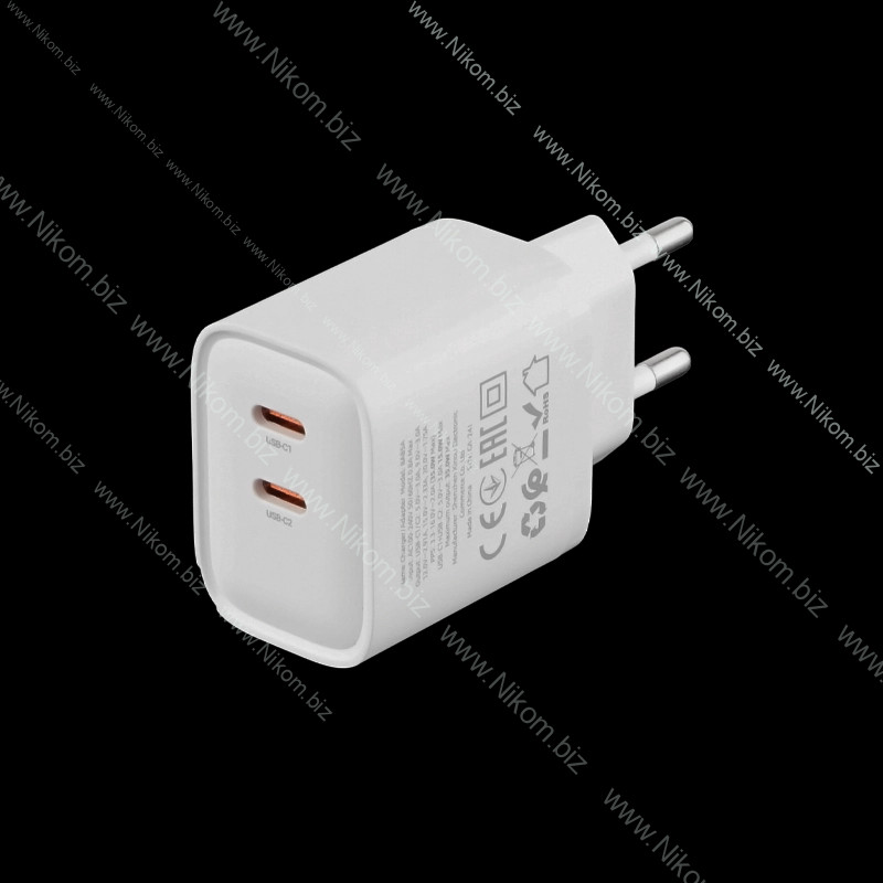 Мережевий зарядний пристрій призначений для швидкої зарядки двох пристроїв одночасно через порти Type-C. Підтримує технології Power Delivery та Quick Charge. Має компактний форм-фактор, вогнестійкий корпус і підходить для використання вдома, в офісі або в дорозі.