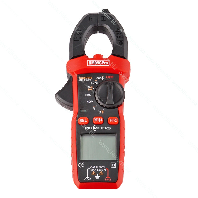 Цифрові струмовимірювальні кліщі Richmeters RM99C Pro призначені для вимірювання змінного та постійного струму без розриву ланцюга. Модель оснащена дисплеєм на 6000 відліків, True RMS, NCV-датчиком, підсвіткою та широким набором вимірювальних функцій. Підходить для роботи в електромережах, монтажних і сервісних умовах.