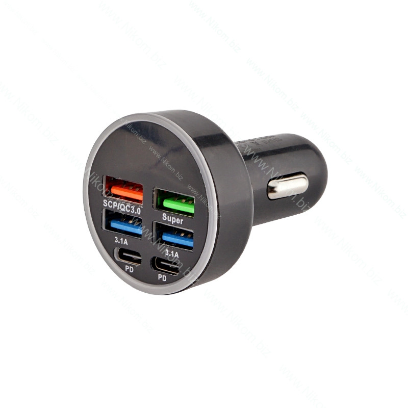 Uin-12-24V; 4 порти USB A до 25W; 2 порта type-C до 8W