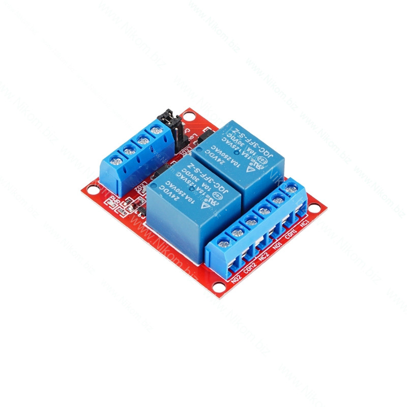 Цей модуль призначений для безпечної комутації силового навантаження за допомогою мікроконтролерів та налагоджувальних плат. Модуль оснащений двома реле 10А, що мають окремі керуючі входи. Рівень керуючого сигналу (високий або низький) можна встановити індивідуально для кожного входу за допомогою встановлених на платі джамперів S1 та S2: