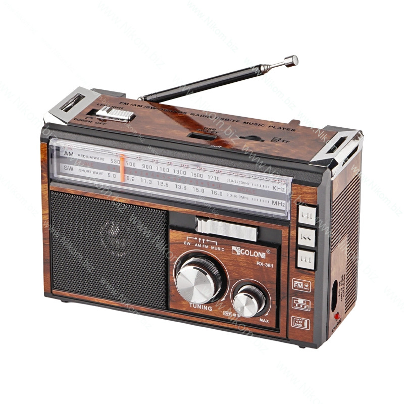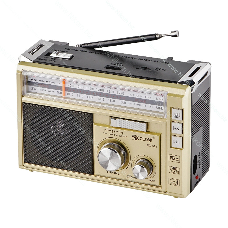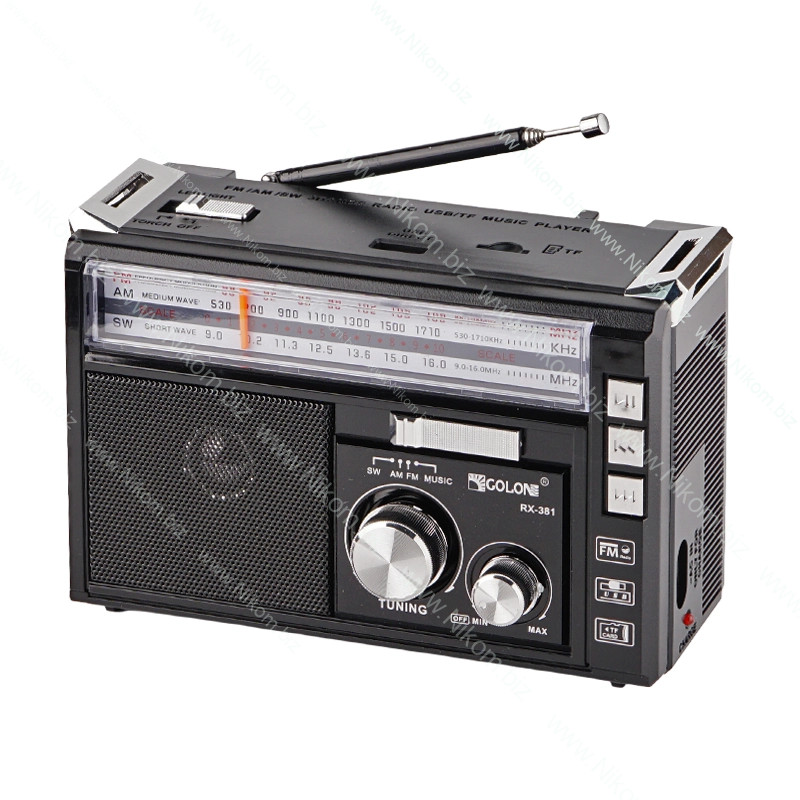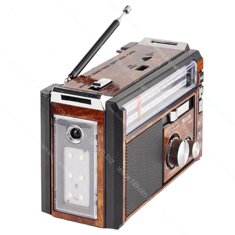 Портативний аналоговий радіоприймач призначений для прослуховування радіохвиль і музики у виїзних та побутових умовах. Працює від мережі або вбудованого акумулятора, підтримує USB, SD носії, має вбудований LED ліхтарик і телескопічну антену.