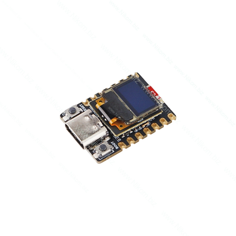 Компактна плата розробки на базі ESP32-S3 оснащена двоядерним процесором Xtensa LX7 з тактовою частотою до 240 МГц та OLED-дисплеєм розміром 0.42 дюйма. Підтримує Wi-Fi 2.4 ГГц та Bluetooth 5 LE. Підходить для IoT-проєктів, носящих пристроїв та вбудованих рішень із низьким енергоспоживанням.