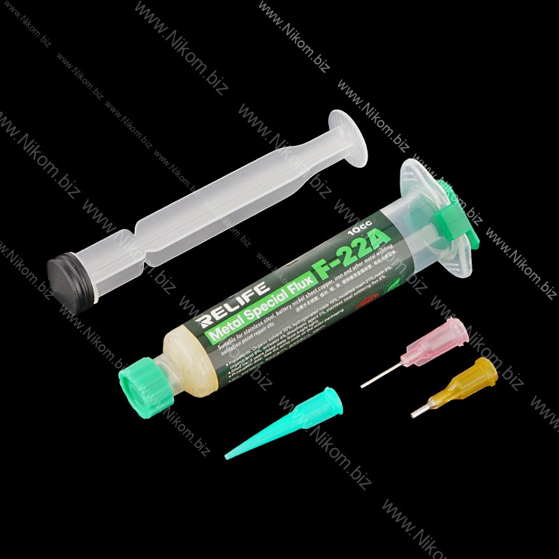Флюс Relife F-22A предназначен для пайки нержавеющей стали, никеля, меди и стали. Обладает высокой активностью, обеспечивает надежное смачивающее действие и прочное соединение металлов. Упаковка объёмом 10 мл удобна для точного дозирования.