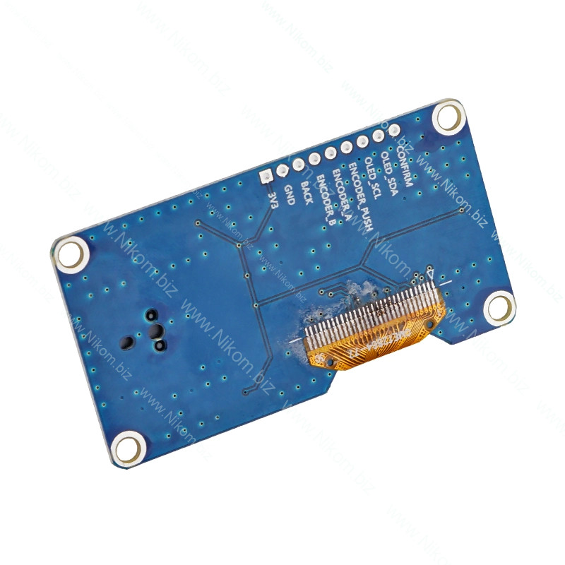 Модуль представляет собой комбинацию дисплея OLED с интерфейсом IIC и энкодера EC11. Компоненты работают независимо и просто размещены на одной плате для удобства. В комплекте предусмотрены кнопки «Назад» и «Подтвердить», которые также функционируют отдельно и могут использоваться по мере необходимости. Цельная компоновка делает конструкцию компактной, упрощает внешний вид и повышает удобство при создании DIY-проектов.
