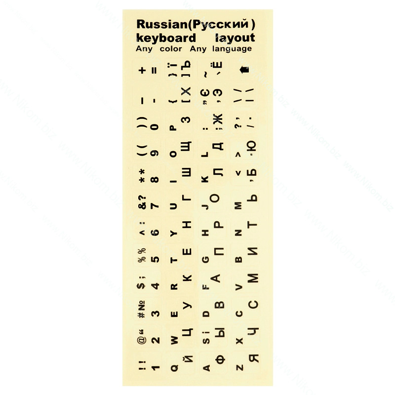 Английские, украинские и русские буквы, символы; 48 наклеек
