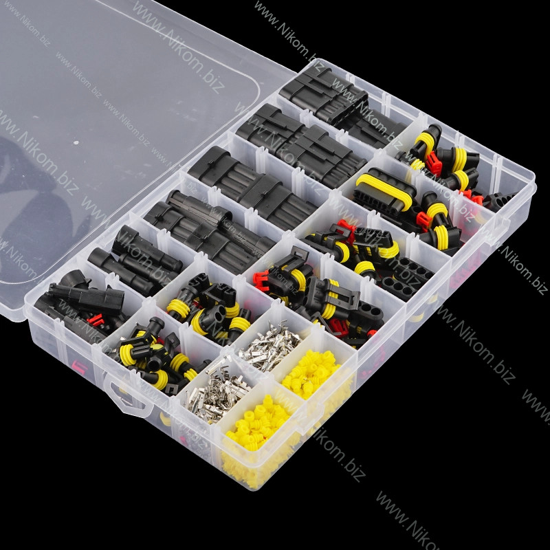 Набор герметичных влагозащищённых разъёмов предназначен для надёжного подключения электрических цепей в условиях повышенной влажности, пыли и загрязнений. Идеально подходит для автомобильной, мото- и спецтехники, а также других систем, требующих защищённых соединений. Обеспечивает стабильную работу электрооборудования в любых погодных условиях.