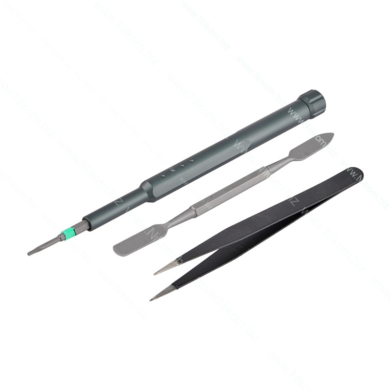 Набор отвёрток 31 в 1 предназначен для работы с электроникой, часами, смартфонами и другой техникой. Оснащён 28 битами из высокопрочной стали S2, рукояткой, пинцетом и лопаткой. Компактный алюминиевый корпус обеспечивает удобное хранение и транспортировку.