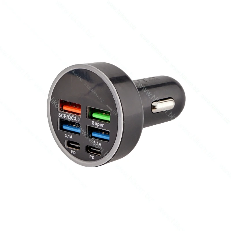 Uin-12-24V; 4 порта USB A до 25W; 2 порта type-C до 8W
