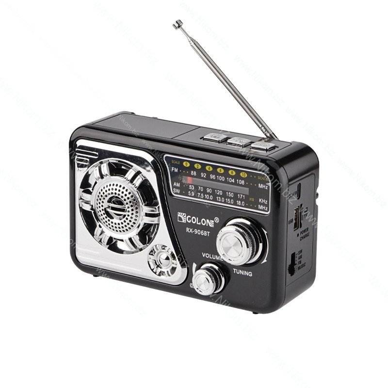 Портативное радио Golon RX‑906BT сочетает FM/AM‑тюнер, Bluetooth‑приёмник и аккумуляторную автономность. Подходит для прослушивания радиостанций или музыки со смартфона — отличное решение для дома, дачи или отдыха на природе. Оснащено USB‑выходом для зарядки внешних устройств.