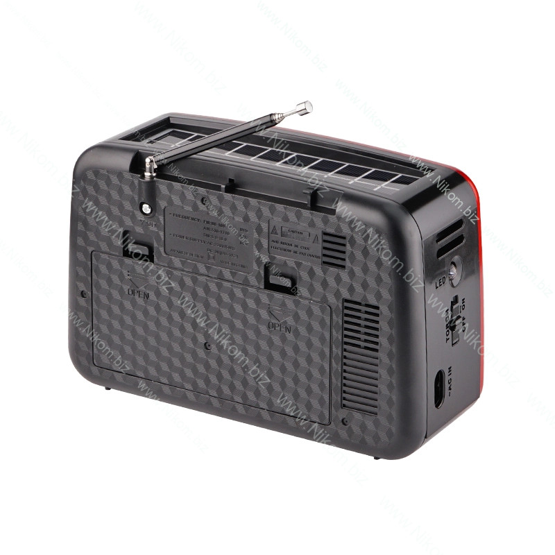FM, AM, SW; USB, TF, TWS, питание 1х18650, солнечная панель