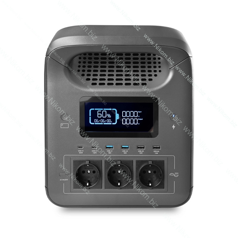 • 3 розетки AC (инвертор): 1800Вт (пиковая 3000Вт), 220–240В, 50/60 Гц