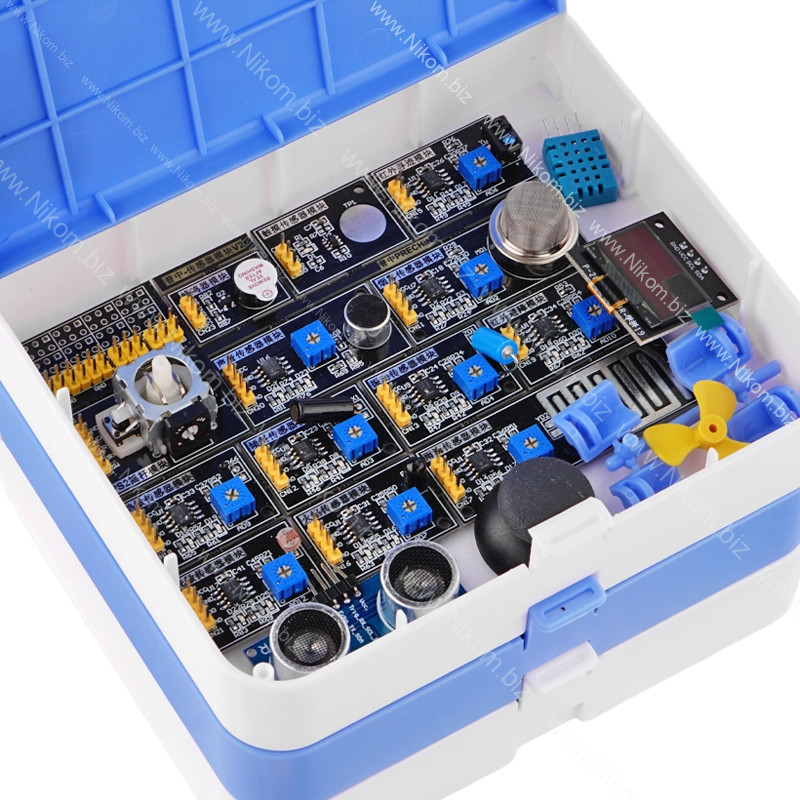 контроллер ESP32 и 34 разных модулей и датчиков в пластиковом боксе