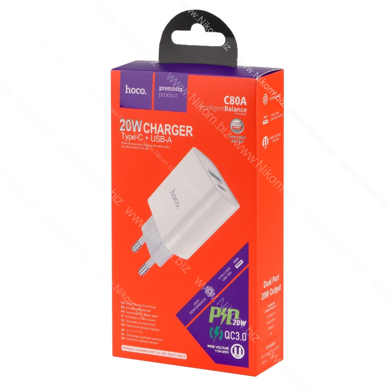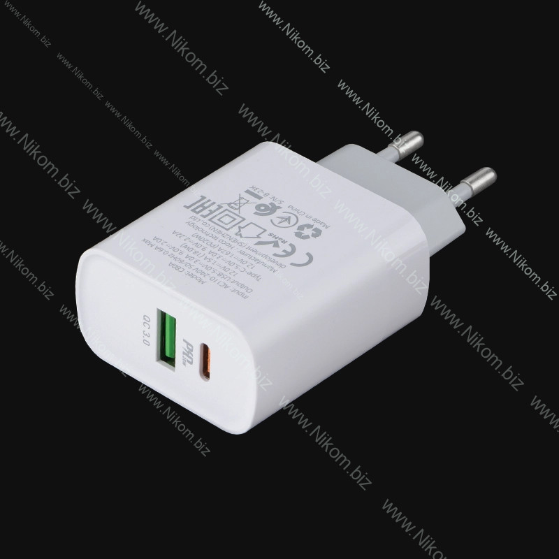 порт Type-C + USB A; PD20W; QC3.0: 5В 3А, 9В 2А, 12В 1,5А
