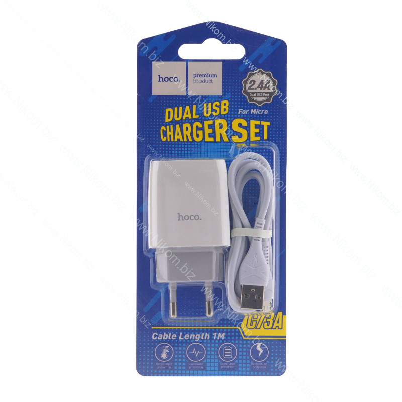 кабель microUSB; 2 порта USB A; макс. ток 2,4A; выходное напряжение 5V