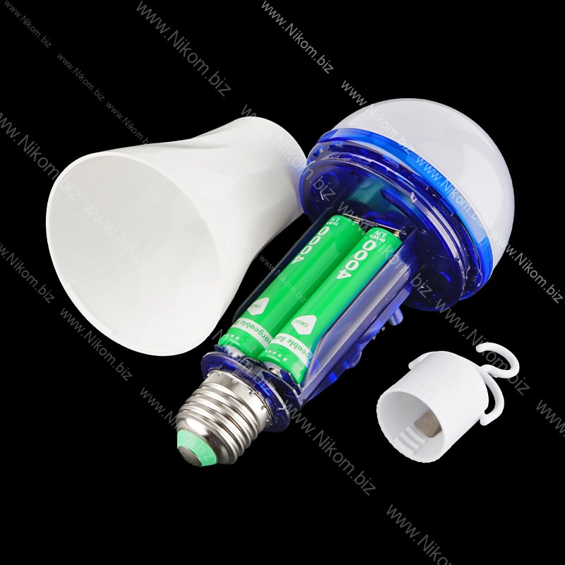 живлення 90-265V; цоколь E27; 2x18650 li-ion в комплекті