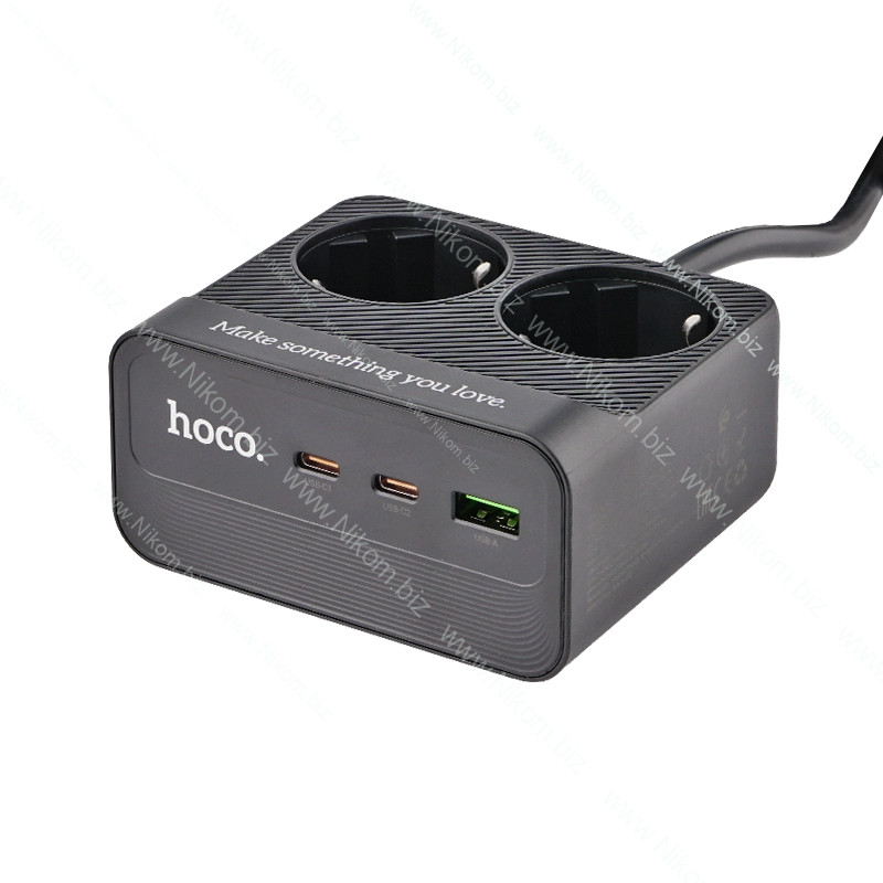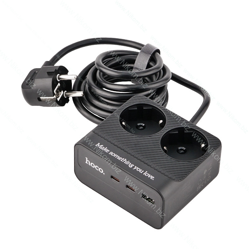 Мережевий зарядний пристрій Hoco AC27 поєднує в собі функції подовжувача та зарядної станції. Оснащений двома розетками та трьома портами (два USB-C і один USB-A), забезпечує швидке заряджання різних пристроїв. Завдяки кабелю довжиною 2 метри, забезпечується зручний доступ до електроживлення в будь-яких умовах.