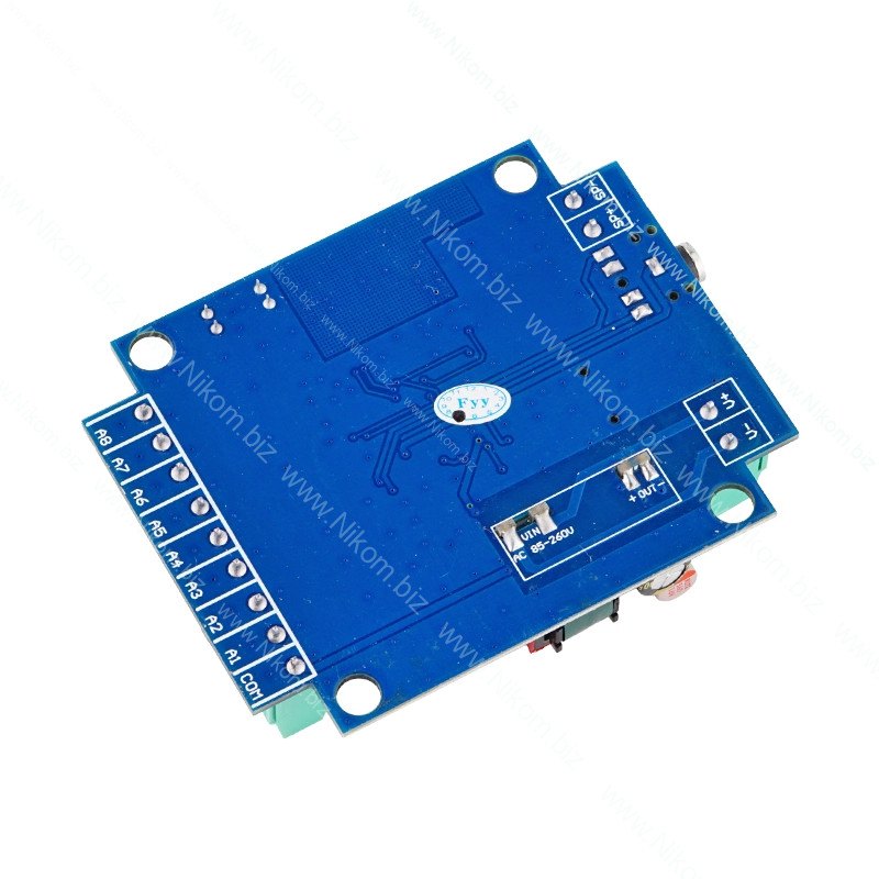 Голосовий модуль YS-M3D6 (версія 220 В) призначений для відтворення до 8 звукових файлів з карти памʼяті microSD при активації відповідних входів. Підключається безпосередньо до мережі 220 В, не потребує зовнішнього живлення. Має аудіовихід 3.5 мм для підключення навушників або підсилювачів і можливість підключення пасивних динаміків. Підтримує вибір режиму відтворення за допомогою DIP-перемикачів, що робить його універсальним рішенням для систем оповіщення, реклами, автоматики та інших проєктів.