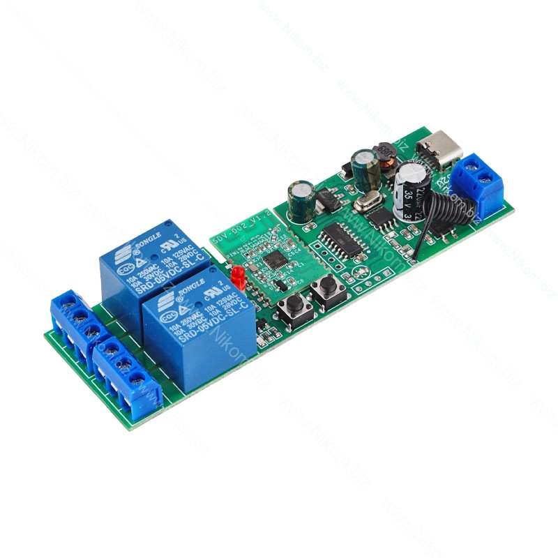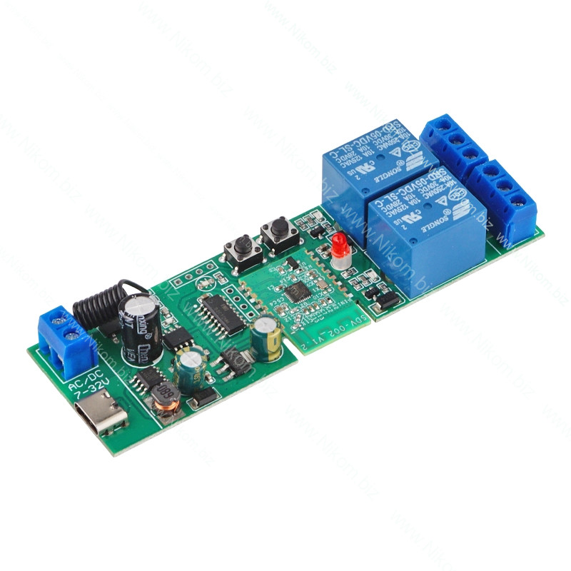 живлення AC/DC 7–32В/5В Type-C, WiFi 2.4 ГГц, Bluetooth, RF, 2 реле 250В10A
