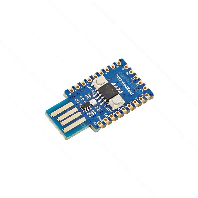 Плата розробки Waveshare RP2040-One створена на базі мікроконтролера RP2040. Відрізняється мініатюрними розмірами, вбудованим USB-A роз'ємом для програмування та живлення, а також можливістю прямої інтеграції у проєкти завдяки зубчастому краю друкованої плати. Призначена для швидкого прототипування та створення проєктів у галузі автоматизації, IoT та робототехніки.
