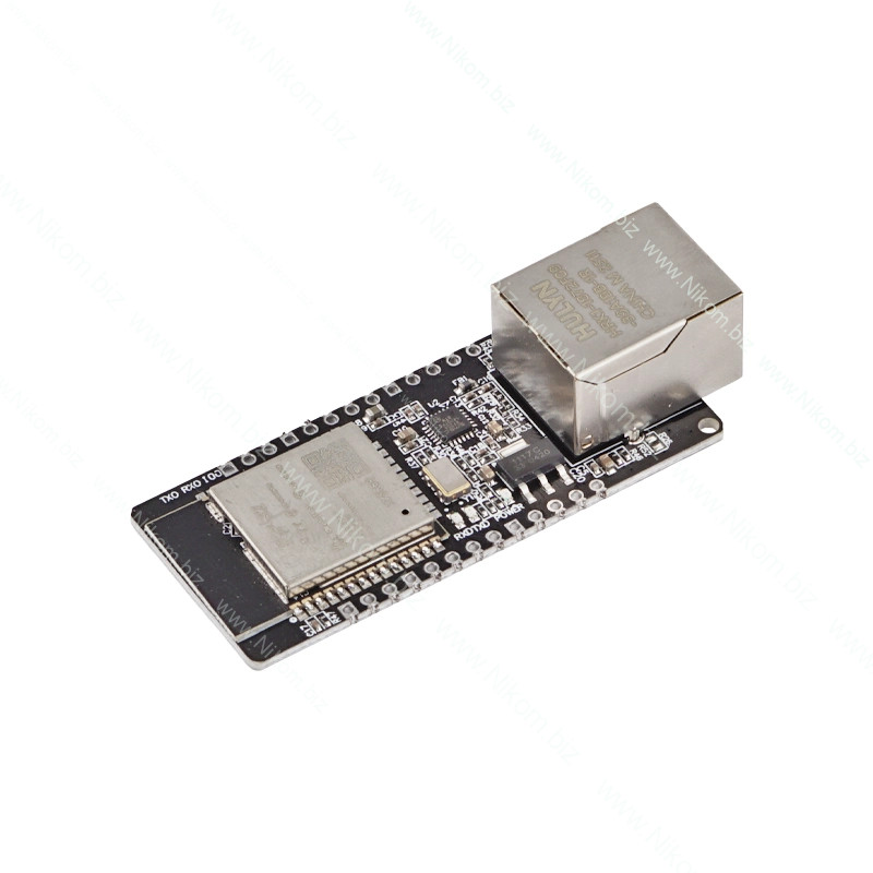 WT32-ETH01 — плата розробника на базі ESP32 з підтримкою Ethernet, Wi-Fi та Bluetooth. Оснащена портом RJ45 і контактами GPIO для підключення периферії. Інтегрований стек TCP/IP і підтримка віддаленого оновлення прошивки. Використовується для створення мережевих вбудованих рішень з розширеними можливостями підключення.