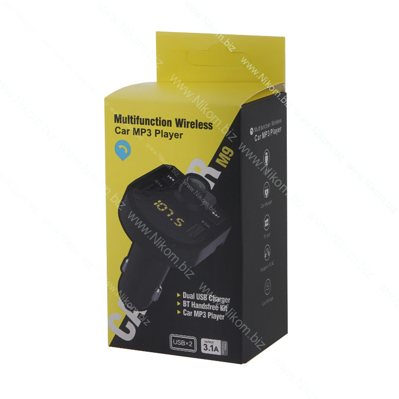 Модулятор M9 - багатофункціональний та ергономічний прилад, що поєднує в собі ряд корисних функцій. Насамперед, модулятор здатний транслювати аудіо дані на акустичну систему FM-приймача автомобіля. Джерелом даних може бути USB-накопичувач або телефон, за допомогою Bluetooth. Розташовані в передній частині порти USB допоможе швидко зарядити різні портативні пристрої.